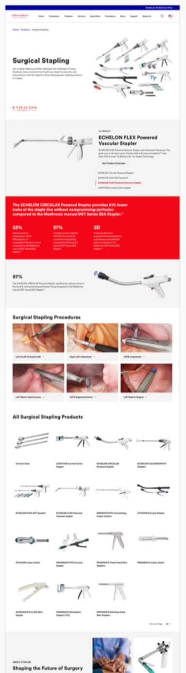 Ethicon stapler product page after redesign